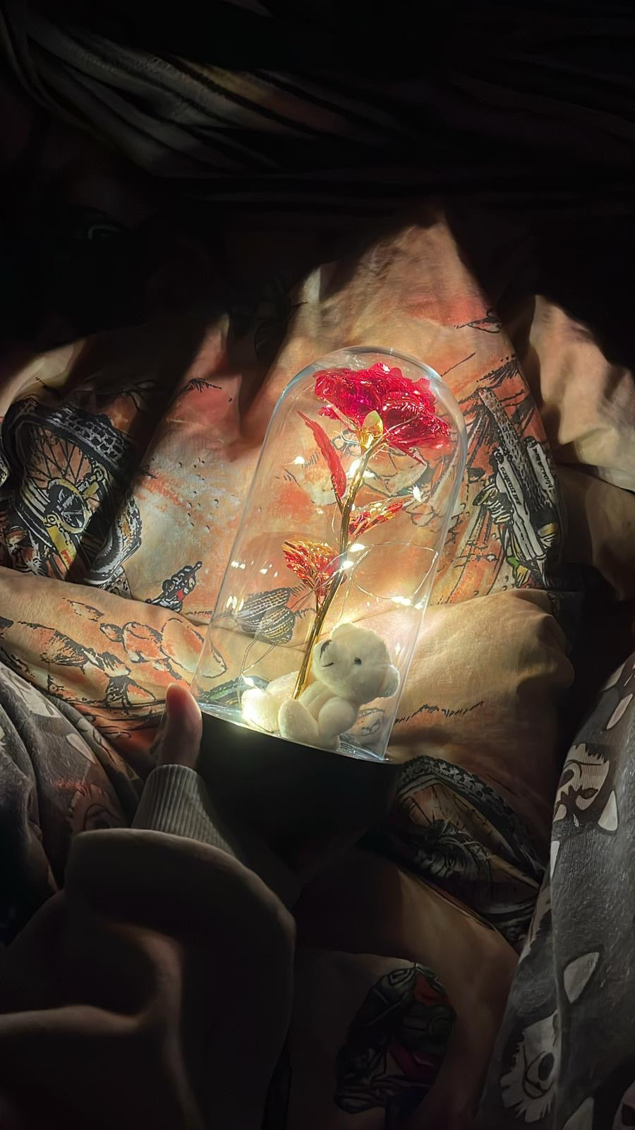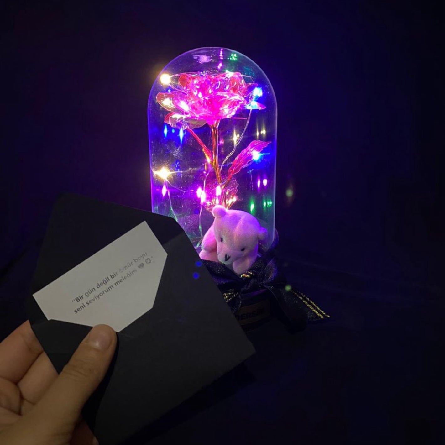 Işıltılı Solmayan Bir Gülün Güzelliğine Ek Olarak,Kişiye Özel Tasarımlı Ayıcıklı Cam Fanus,Siz ve Sevgiliniz Arasında Birlikte Sahip Olduğunuz Güzelliği Korumak İçin Yapılan Tüm Çabaları Temsil Eder!